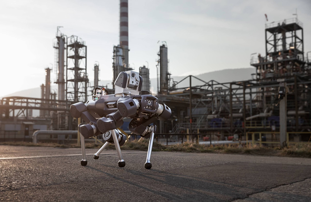 Anymal X é projetado para uso intrinsecamente seguro em atmosferas explosivas e poeira e à prova d’água para operação em todas as condições climáticas. | Fonte: AnyBotics
