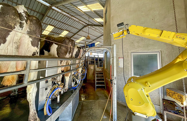 A Pharm Robotics está automatizando a entrega de produtos farmacêuticos às vacas quando entram no salão leitoso. | Crédito: Pharm Robotics